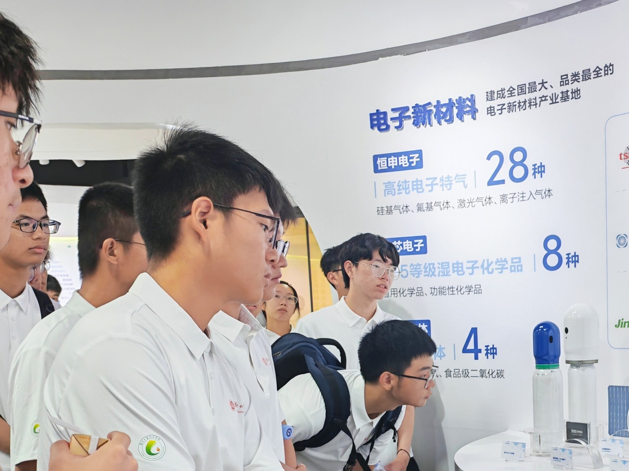 在实地观摩环节,新生们沿行政楼、中控室、生产装置区、码头、青年公寓等关键点位参观,近距离接触电子级特种气体装置与新材料研发现场。通过走进中控室与实验室,同学们直观了解了现代化工企业的岗位运作模式。在沉浸式参访中,原本停留在课本上的知识转化为生动的生产图景,从装置运转到物流支持,从生产现场到生活配套,一条完整的化工产业链在同学们眼前徐徐展开。尤其令人印象深刻的是舒适的员工食堂与温馨的青年公寓,彻底改变了大家对化工企业“冰冷”的刻板印象,感受到浓浓的人文关怀。