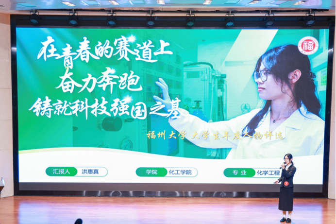 经过线下评审、线上投票和现场答辩,我院博士研究生洪惠真和本科生吴东宇围绕党性修养、学业深耕、志愿服务、科研攻坚等方面,全面展现了新时代青年的优秀风貌,以勤奋为反应物用坚持作催化剂在福州大学这片创新沃土上,生成属于新时代化工青年的精彩答案。
