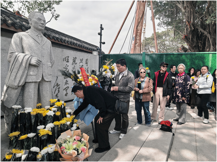 抵达螺洲古镇后,全体退休教职工首先来到吴石将军雕像前。大家列队肃立,向这位隐蔽战线的无名英雄敬献鲜花,鞠躬致敬,表达对革命先烈的崇高敬意与深切缅怀。随后,老同志们在雕像前合影留念,定格初心印记,铭记英雄精神。