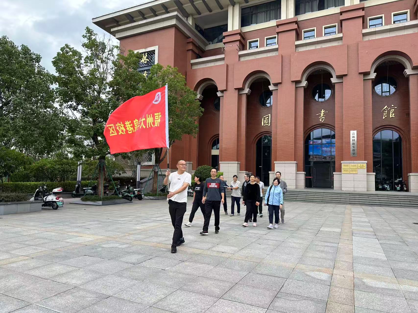 健步走环节中,在学院党委书记林航、副书记蒋林娟、副院长王文栋、催化中心副主任张向宁、工会主席黄云云等党政工领导的带领下,化工学院旗山校区队伍手持院旗,从第一田径场有序出发,沿途经方境桥、福友阁、雕塑园等校园地标的路线稳步前行。泉港校区队伍从图书馆出发,途经教学楼、实验楼、室外田径场、外环路、校门口、体育馆,教职工们跟随旗帜,列队从起点走到终点。大家并肩迈步,时而畅谈工作生活,时而驻足欣赏校园景致,3.5公里的路程里满是轻松融洽的氛围,展现出化工人昂扬向上的精神风貌。