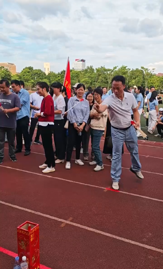 健步走结束后,趣味运动会接力开赛。化工学院代表队全力冲刺四个团体项目,各赛场亮点纷呈:投壶赛场边,十位老师屏息凝神、精准投掷,每一次箭羽入壶都引来阵阵喝彩,尽显沉稳专注的风采 ;提升踏板项目中,四人一组脚踩道具同步迈进,“左右、左右”的口令声整齐划一,步伐的协同里凝聚着高效执行力 ;同心击鼓环节最为考验默契,十位老师紧握绳端,随着鼓面颠球节奏调整力度,球起球落间彰显团队信任与协作的力量;龙行天下项目中,十位老师合力提举“龙身”稳步疾驰,如蛟龙出海般展现磅礴气势,最终凭借精准配合斩获全校第三名的佳绩 。此外,泉港校区的教职工还进行了乒乓球、羽毛球比赛,选手们身姿矫健,球技高超,现场永远充满了活力与欢笑。赛场上,老师们不顾汗水浸湿衣衫,全力拼搏的模样成为最动人的风景,围观师生的加油声此起彼伏。