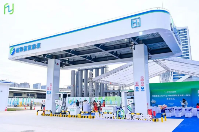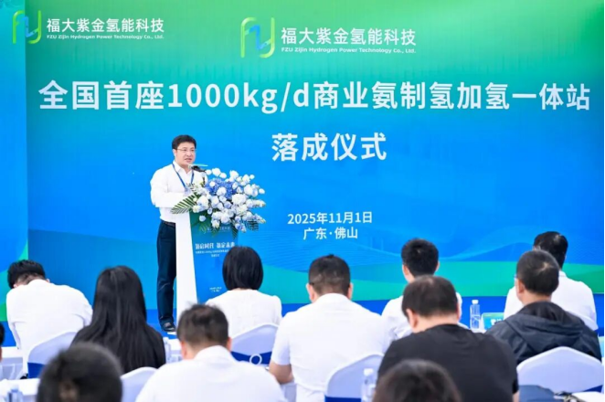 11月1日,由福大紫金氢能科技股份有限公司打造的全国首座1000公斤/天商业氨制氢加氢一体站,在佛山市南海区里水镇正式落成投运。