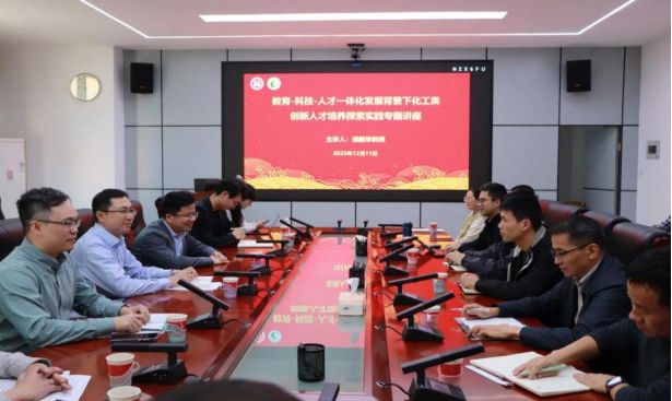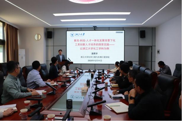 为深入探索教育、科技、人才一体化发展背景下化工类创新人才培养的有效路径,12月11日下午,化工学院在411会议室举办专题讲座,特邀浙江大学求是特聘教授、教育部“长江学者”潘鹏举教授担任主讲。讲座由学院党委书记林航主持,副院长梁诗景、杨臣、葛新,各教学团队负责人、系主任及教研教改项目负责人等参加。